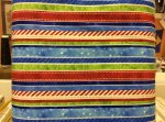 View Large Image | Santa's Surprise-White-Stripes Stripes in blues, white, reds, greens with peach dots in red stripe